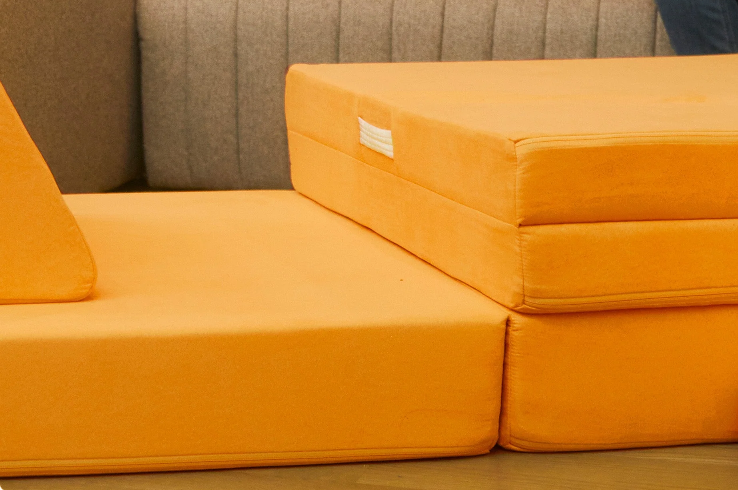The Classic Couch, built for endless configurations. Featuring four foam pieces, a sturdy base, soft cushion, and two versatile triangle pillows, all wrapped in your choice of washable, durable fabric.